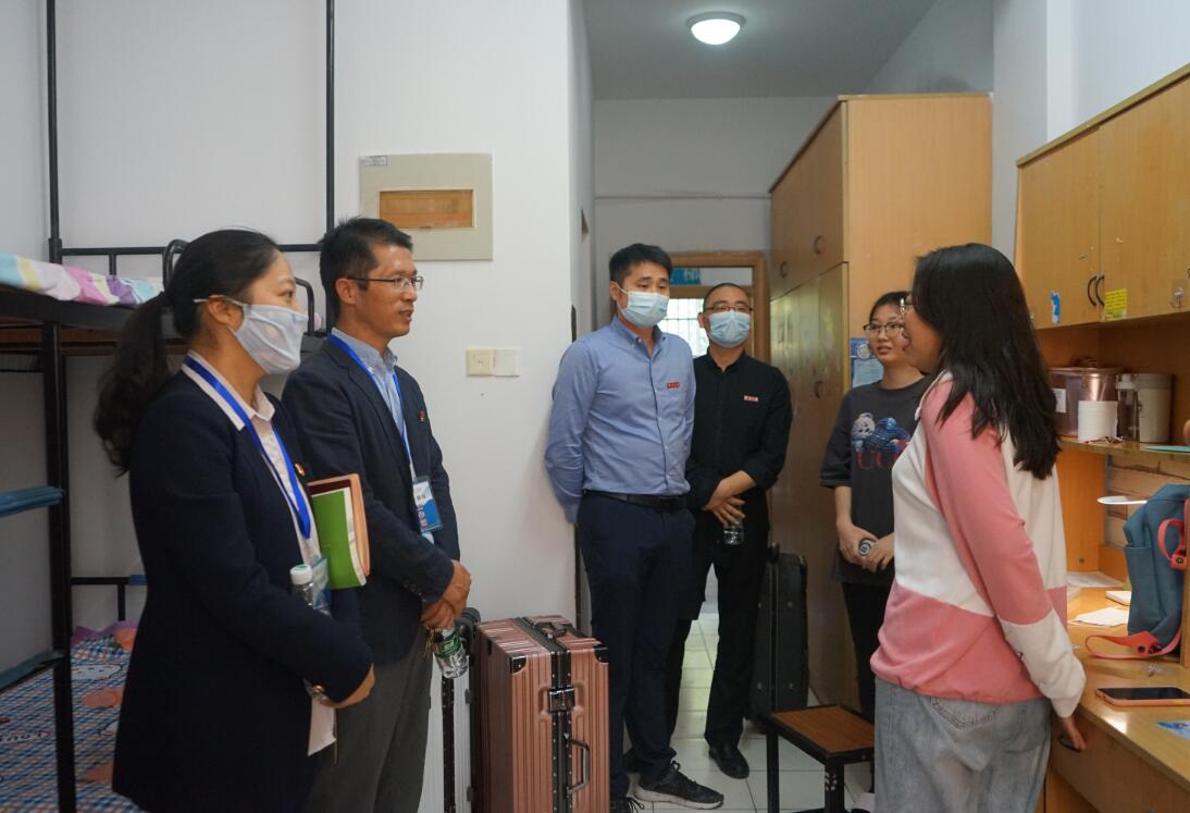 走访中,学院领导老师与新生们亲切交谈,十分关心同学们饮食、生活等方面是否适应大学生活,提醒大家注意宿舍用电安全、财产安全以及出行安全。同时希望新生们可以尽快转变心态,适应环境。新生班主任也走进各自所带班级学生宿舍,与同学们交流,鼓励新生们把握大学时光,全面提升自己,努力学习专业知识并多与老师沟通,共同创造一个精彩的大学生活。