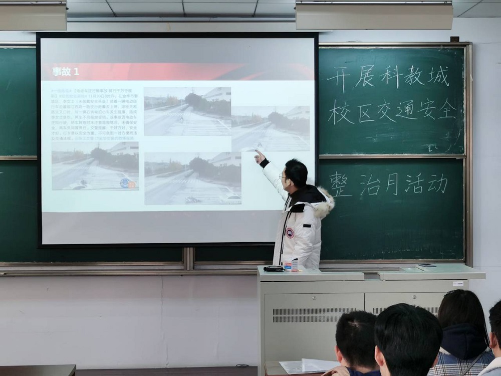 会中,陈科老师就7月1日新出台的《江苏省电动自行车管理条例》中关于“公安交警部门开始对骑乘电动自行车不佩戴安全头盔违法行为进行查处”条目向与会同学进行了详细的解读和说明。同时联系本院在校研究生日常通勤安全隐患,向同学们通过介绍交通事故实例,并对交通安全知识进行讲解。