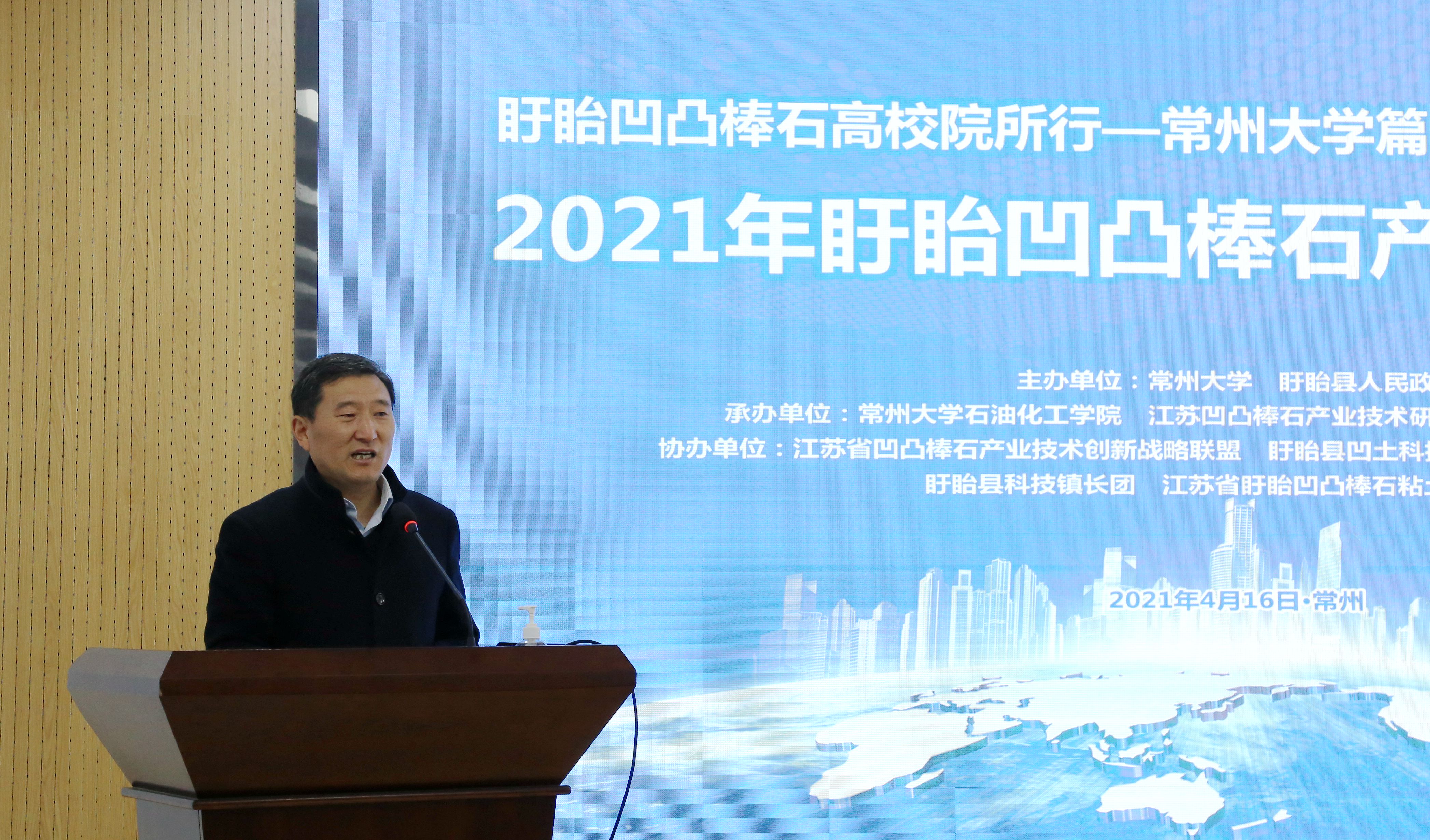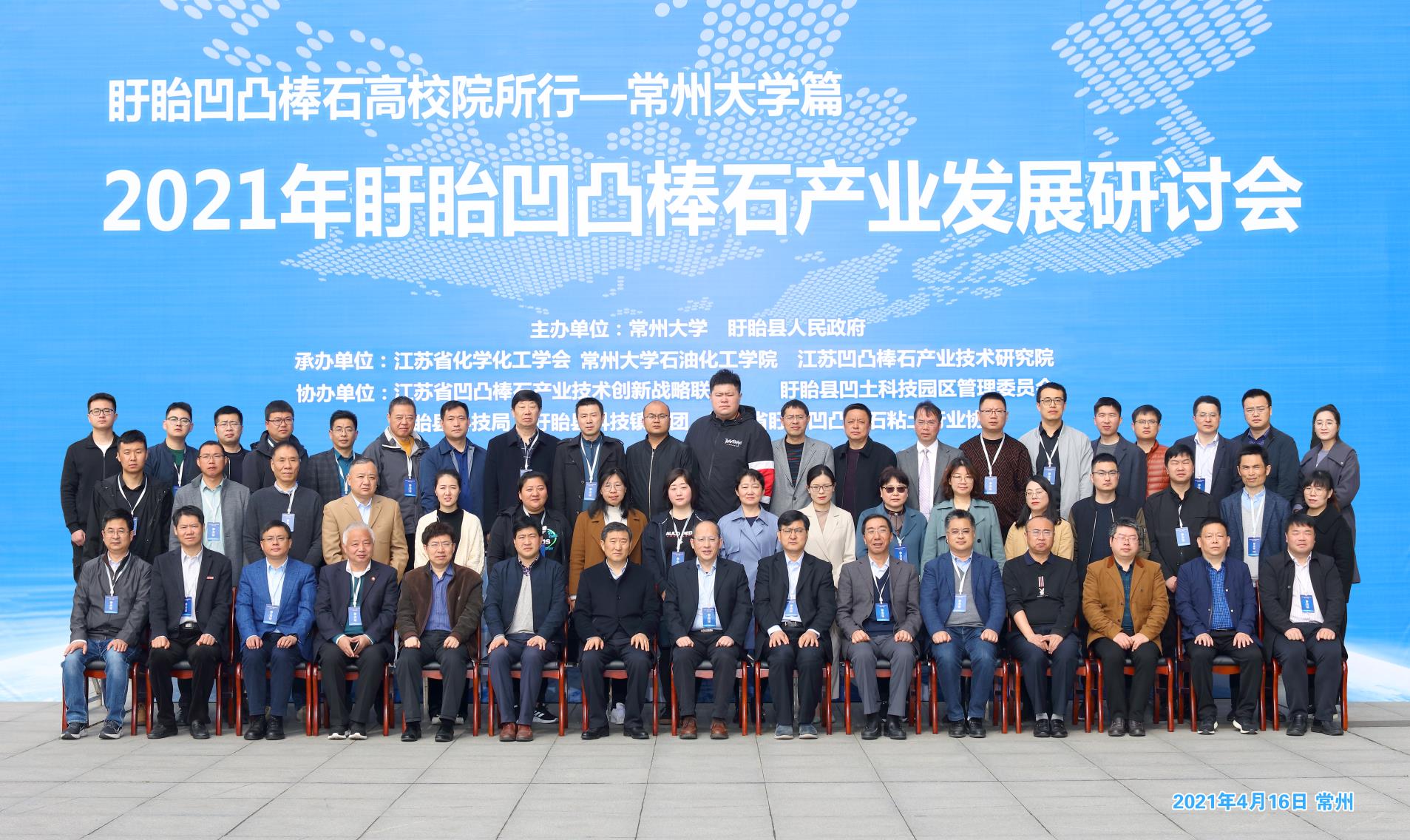 2021年4月16日,由常州大学、盱眙县人民政府举办,江苏省化学化工学会、常州大学石油化工学院、江苏凹凸棒石产业技术研究院承办的2021年盱眙凹凸棒石产业发展研讨会在我校召开,盱眙县人民政府、中科院南京分院、中科院兰州化物所、中科院宁波材料所、中科院广州能源所、生态环境部南京环科所、淮阴工学院、淮阴师范学院、兰州交通大学、常州大学以及多家企业代表等70余人参加了会议。
