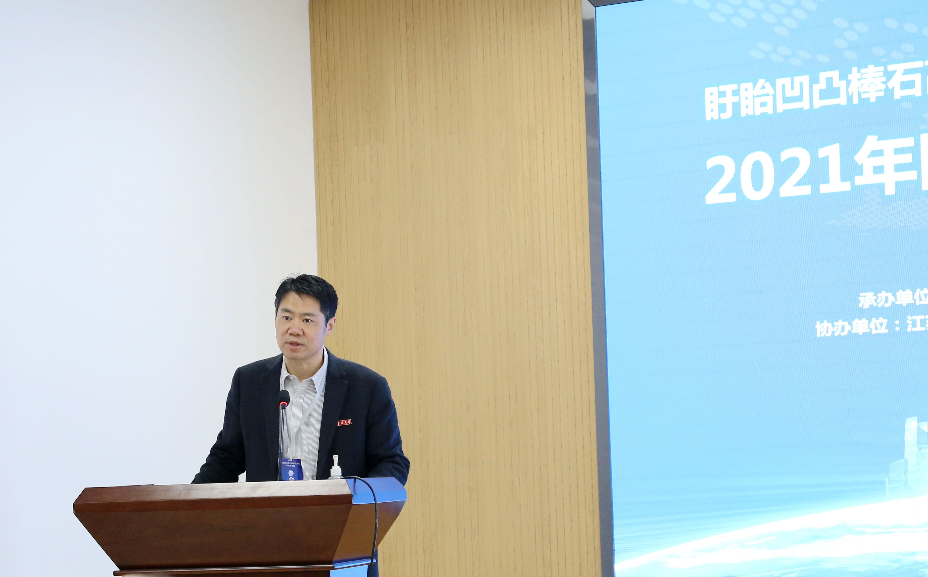 中科院南京分院科技服务与成果转化处处长尹睿发表讲话,指出凹凸棒石是江苏省的特色资源,希望学术界与产业界加强深度合作,促进科技成果的高质量转化。