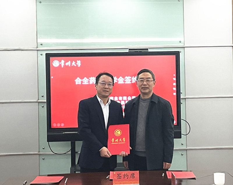 随后,汪有初与浦建民、钟璟签订“合全药业奖学金”协议,浦建民为汪有初颁发捐赠证书。