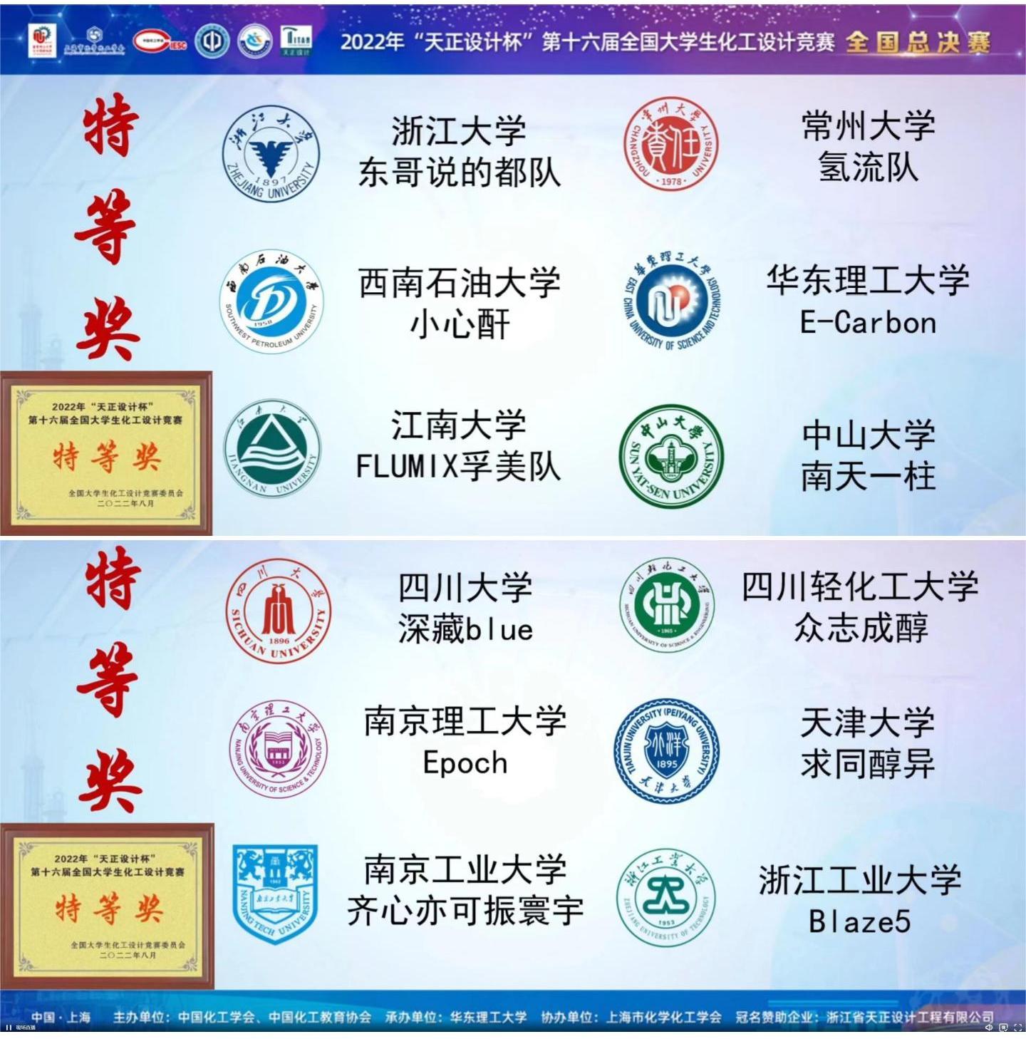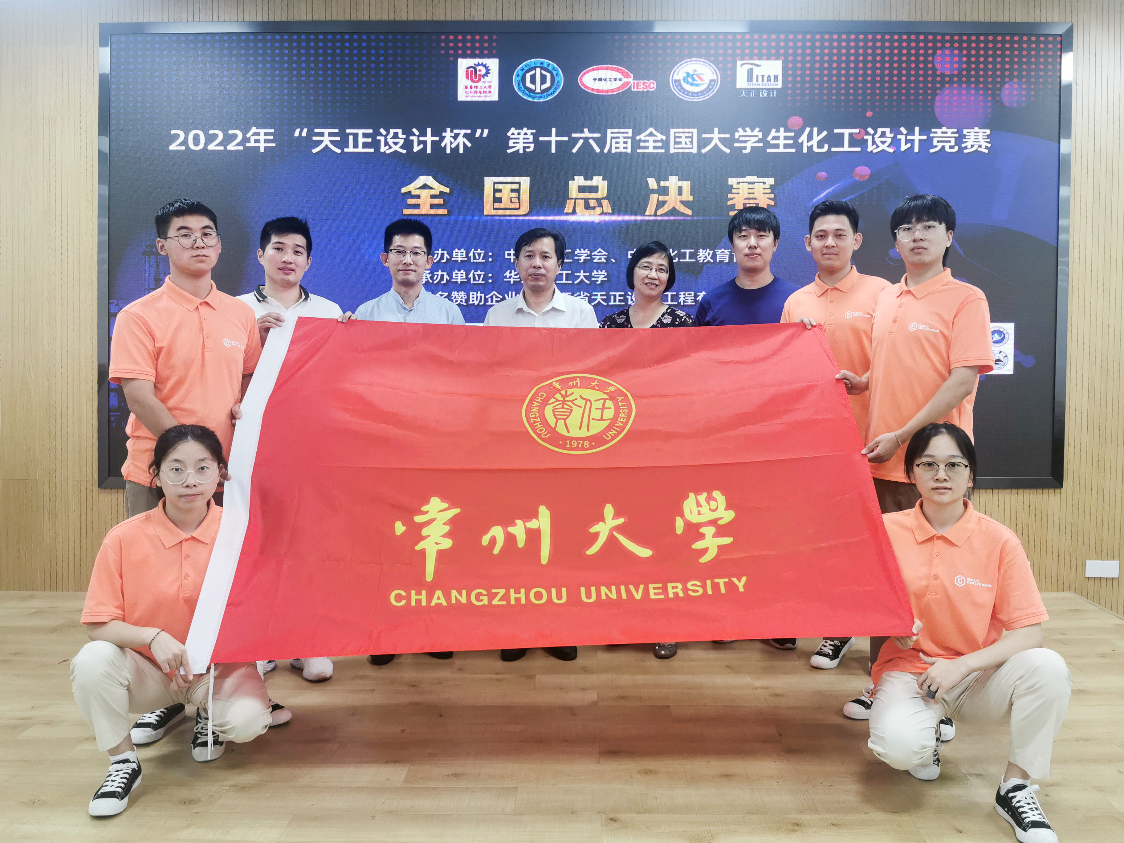 8月15日-8月22日,2022年“天正设计杯”第十六届全国大学生化工设计竞赛全国总决赛在华东理工大学举行。常州大学氢流队(团队成员:赵承启、张旭、李文举、石婧、陈思雨,指导老师:周满、马江权、黎珊、石剑、叶青)从公布竞赛任务书到闯入总决赛,历经七个月不断完善,最终从415所高校2939支团队中脱颖而出,荣获全国总决赛特等奖。