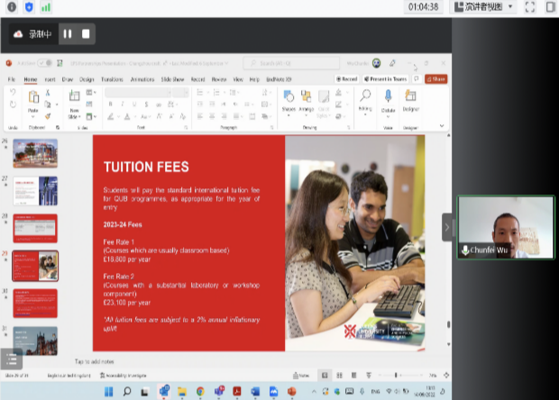 吴春飞教授分享了英国女王大学的日常科研任务与生活情况,与家长们进行交流。通过本次会议希望有更多的同学拥有出国深造的机会。