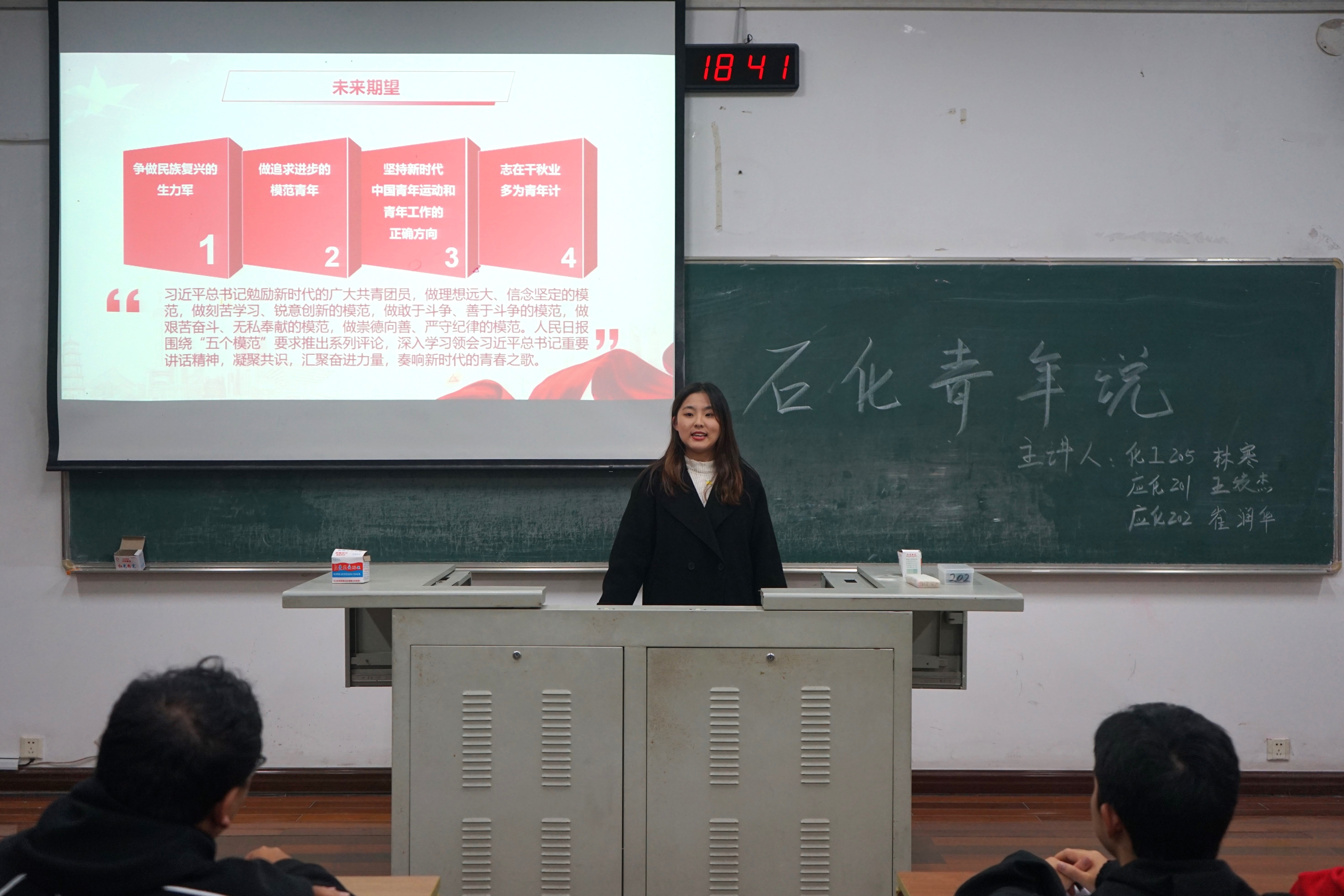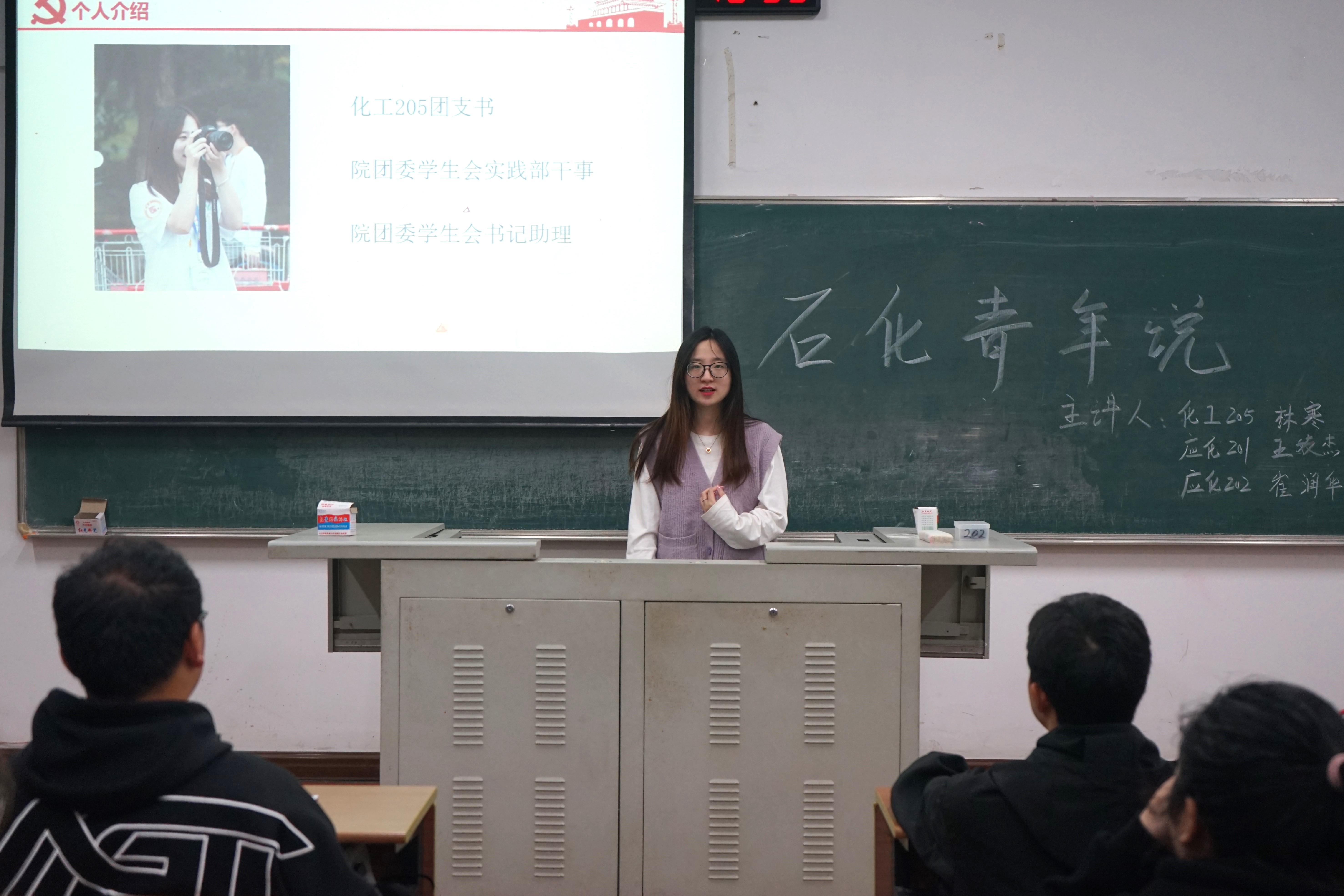为提高我院团员的综合素质,于2022年11月1日18:30在w1202开展了“石化青年说”系列讲座——团内推优经验分享。由我院学生团员化工205林寒、应化201王姣杰、应化202崔润华主讲。