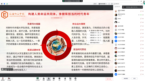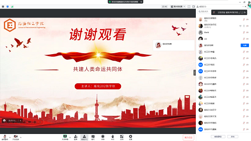为深刻领会人类命运共同体的思想构建,引领当代青年学生听党话、跟党走,胸怀忧国之心、爱国之情,我院于2022年11月8日18:30以线上会议的形式举办“青年讲师团”系列讲座——共建美好世界的最大公约数。本次讲座由我院青年讲师能化202狄宇欣主讲。
