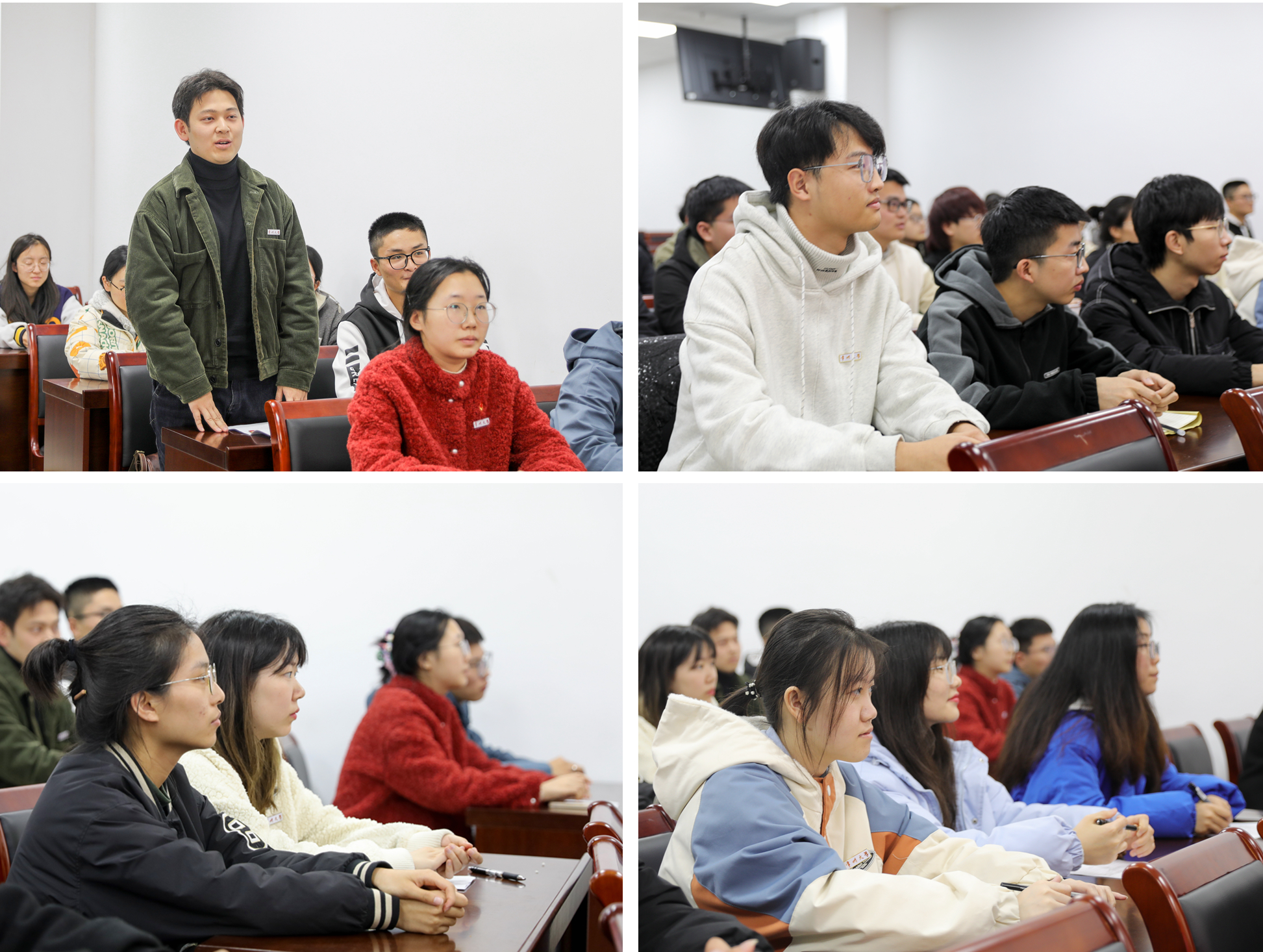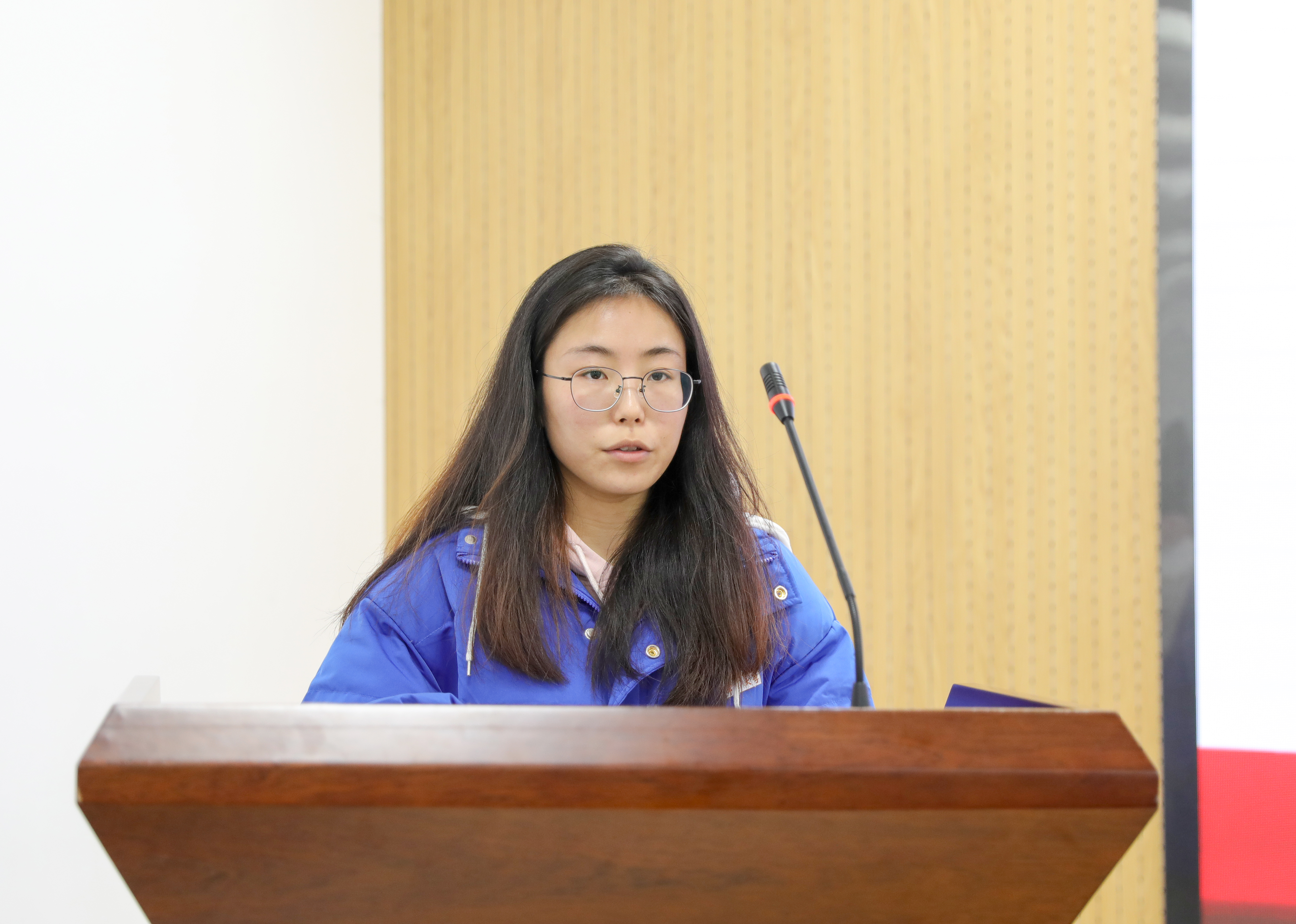 班长李月介绍了班级考研备考情况、就业进展、职业规划和班级同学近期所获荣誉。