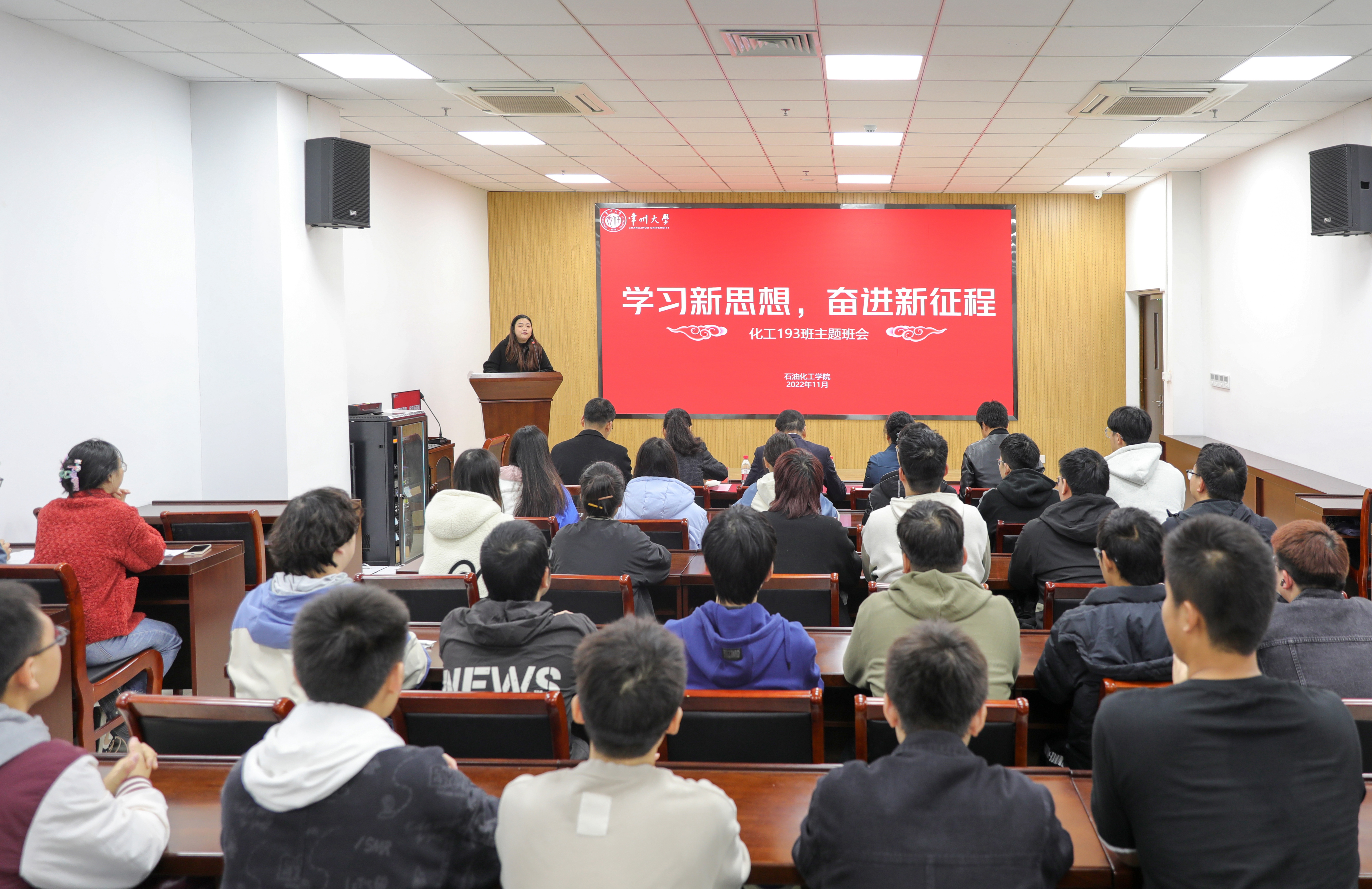 11月17日,党委书记陈群深入联系班级,参加石油化工学院化工193班“学习新思想,奋进新征程”主题班会,石油化工学院党政负责人、辅导员代表、化工193班班主任和全体同学参加主题班会。