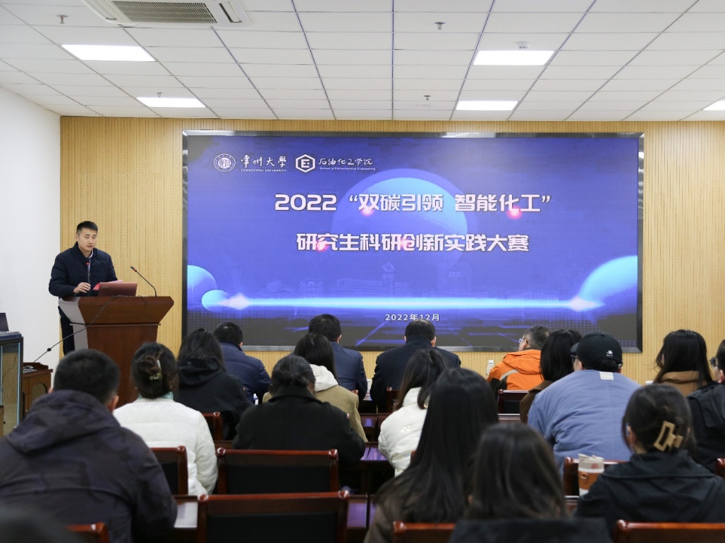 12月2日,由校党委研究生工作部、研究生院主办,石油化工学院承办的2022年常州大学“双碳引领智能化工”研究生科研创新实践大赛于测试实验楼B座B109顺利举行。本次大赛围绕双碳主题,设立生产技术开发、化工清洁生产技术、化工智能制造技术、绿色环保新材料开发等研究方向。同学们参赛积极性高,共计有60余位研究生参与报名。经过专家初审,共有10项作品进入决赛答辩环节。