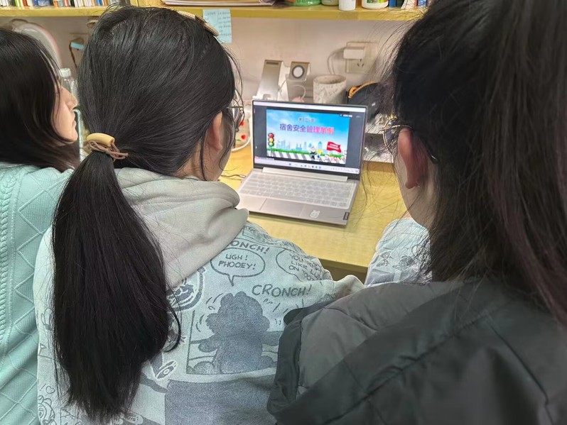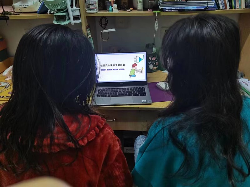 线上会议通过对消防安全、财产安全、用电安全、宿舍诈骗等几个重点问题作出的系统性讲解,明确指出了宿舍中可能存在的安全隐患,而后进一步给出了合理高效的解决方案,并组织同学们在与会同时按照所给步骤,排查自己所在宿舍的安全问题。