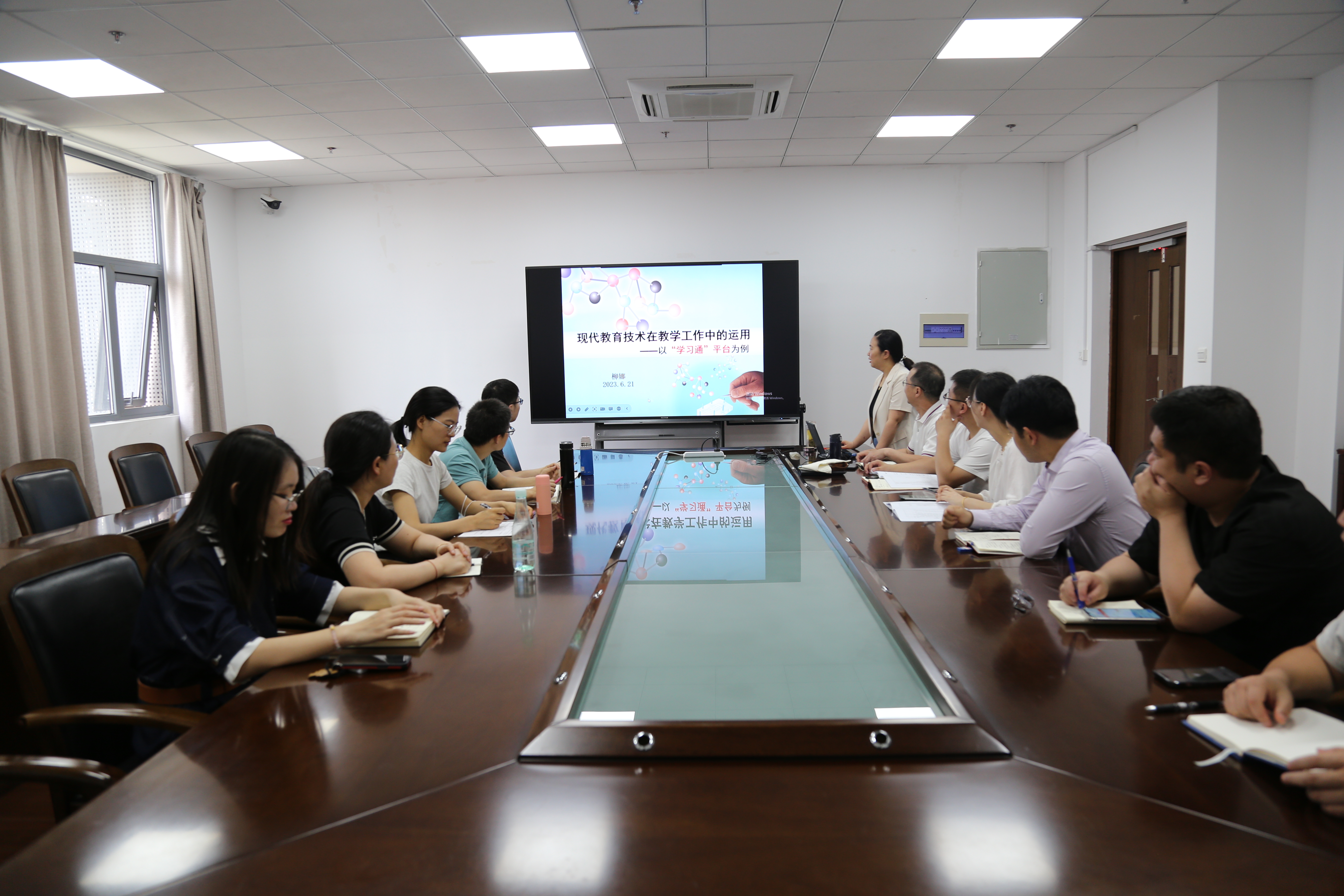 会上,教研室首先集中学习了《石油化工学院本科教学规范简明手册60条》;柳娜老师结合自身运用“学习通”平台的经历,从运用现代教育技术的必要性、“学习通”平台在《无机与分析化学》课程中的具体应用以及个人体会等方面分享了现代教育技术在教学工作中的运用,她从问卷调查、投屏课程互动、课程思维导图、章节测验、教学预警、过程性考核等方面详细分享了“学习通”平台的应用,为教研室其他同事在以后的教学工作中,运用“中国大学mooc慕课平台”、“超星泛雅网络教学平台”等提供了借鉴。