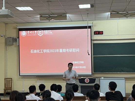 刘茂灿在现场与同学们亲切交谈,向所有学院留校考研的学子提出三点要求:一是学院党委高度重视学生考研服务工作,学院是全体考研学子的坚强后盾,请所有考研的同学打消顾虑向着梦想努力前行;二是考研学习贵在坚持,要充分利用暑假这段时间复习;三是希望留校学生在暑假期间注意人身安全和食品安全。最后刘茂灿祝愿同学们都能取得理想成绩,成功上岸。