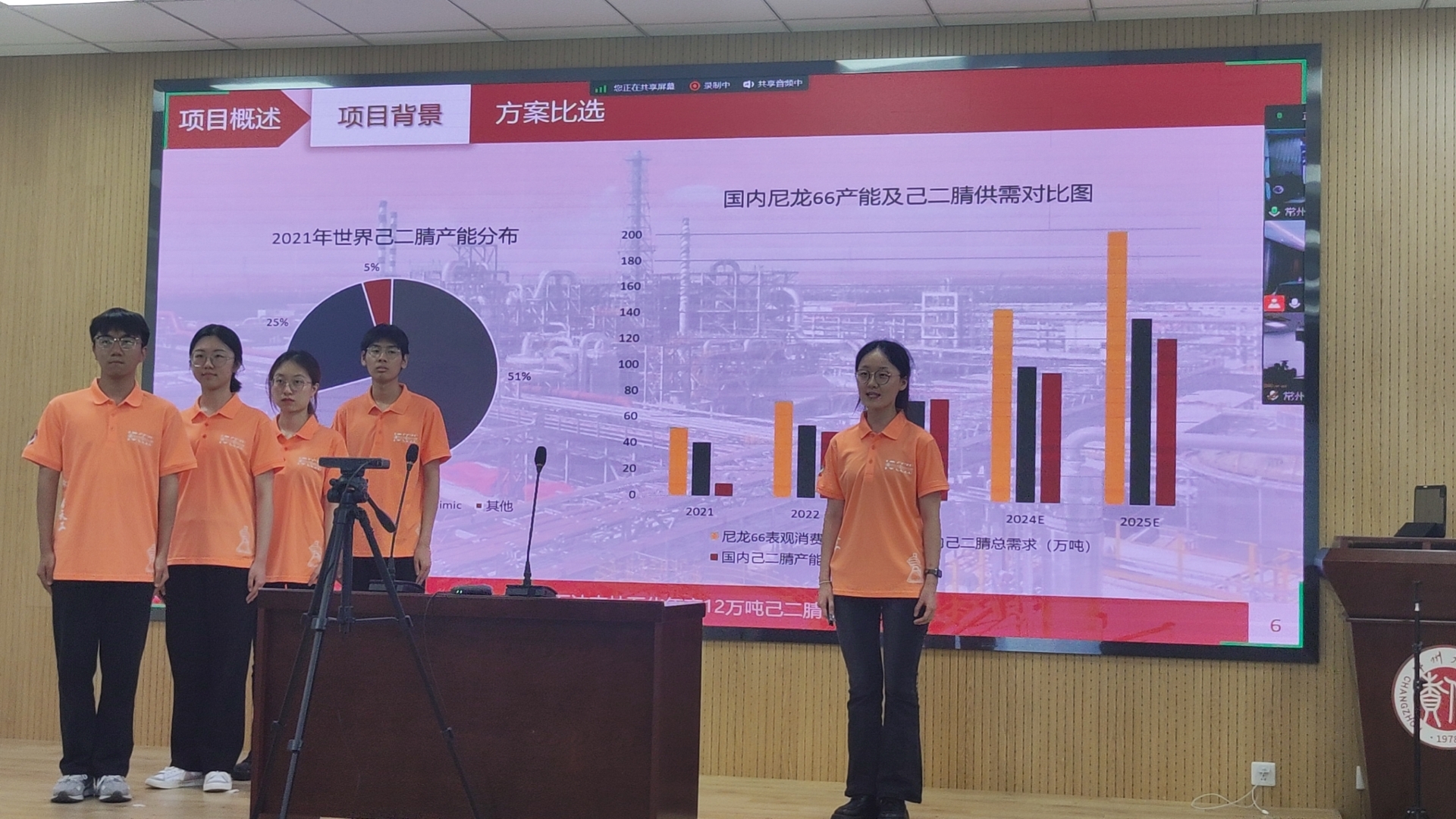 我院对该项赛事高度重视,经过近半年的精心设计,29支团队提交了优秀作品,一支团队经过校赛选拔择优参加省赛线上答辩,经过设计文档、工程图纸和现代设计方法应用三个专项评审和2轮线上答辩评审,本次竞赛常州大学“凌云队”团队作品“中国石油吉林石化年产12万吨己二腈项目”(团队成员:朱焕杰、高 杰、李欣庭、李梦露、唐一航)荣获省赛特等奖,同时“凌云队”经过两轮线上答辩荣获省赛铜奖,接下来,“凌云队”团队将代表学校继续参加今年全国大学生化工设计大赛华东赛区的选拔,望同学们在接下来的竞赛中继续努力,再创佳绩!