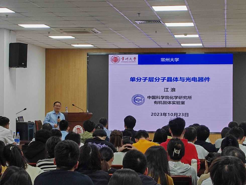 江浪研究员作了题为《单分子层分子晶体材料与器件》的学术报告。他围绕单分子层晶体的可控生长方向做了详尽阐释,针对“高质量单分子层分子晶体达到精确可控的组装”这一难点,他提出了“单分子层内二维结晶驱动力的分子设计+物理方法”的策略。