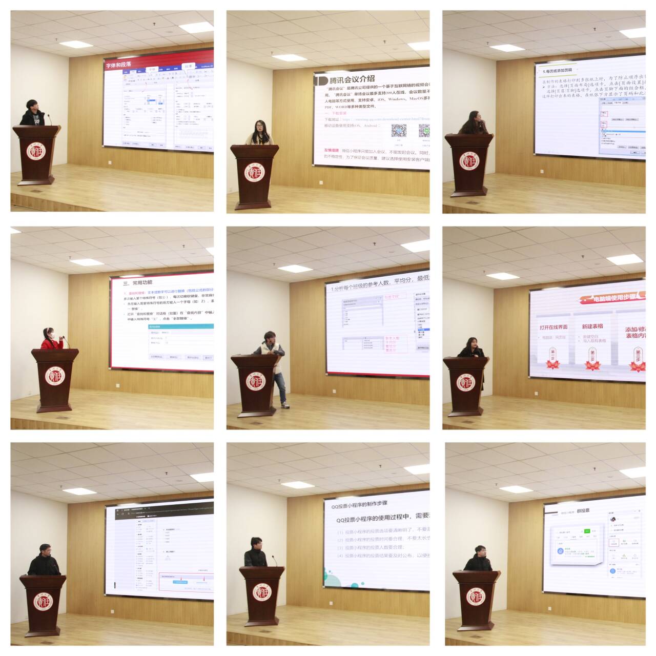 培训会上,宣讲人结合日常学生工作分享了Excel、word、PPT等常用办公软件的使用方法,带领大家认识到文档规范排版、数据快速处理等操作技巧的魅力。接下来,宣讲人结合实际工作案例对在线收集表、QQ群应用、微信小程序的功能应用进行了详细讲解和系统说明。培训过程中,同学们专心听讲,现场跟学操作,收获颇丰。最后,赵彩霞老师对宣讲人认真细致的准备表示充分肯定,并鼓励大家将本次培训学到的技能应用到日常学习工作中,进一步提高研究生管理和服务水平。