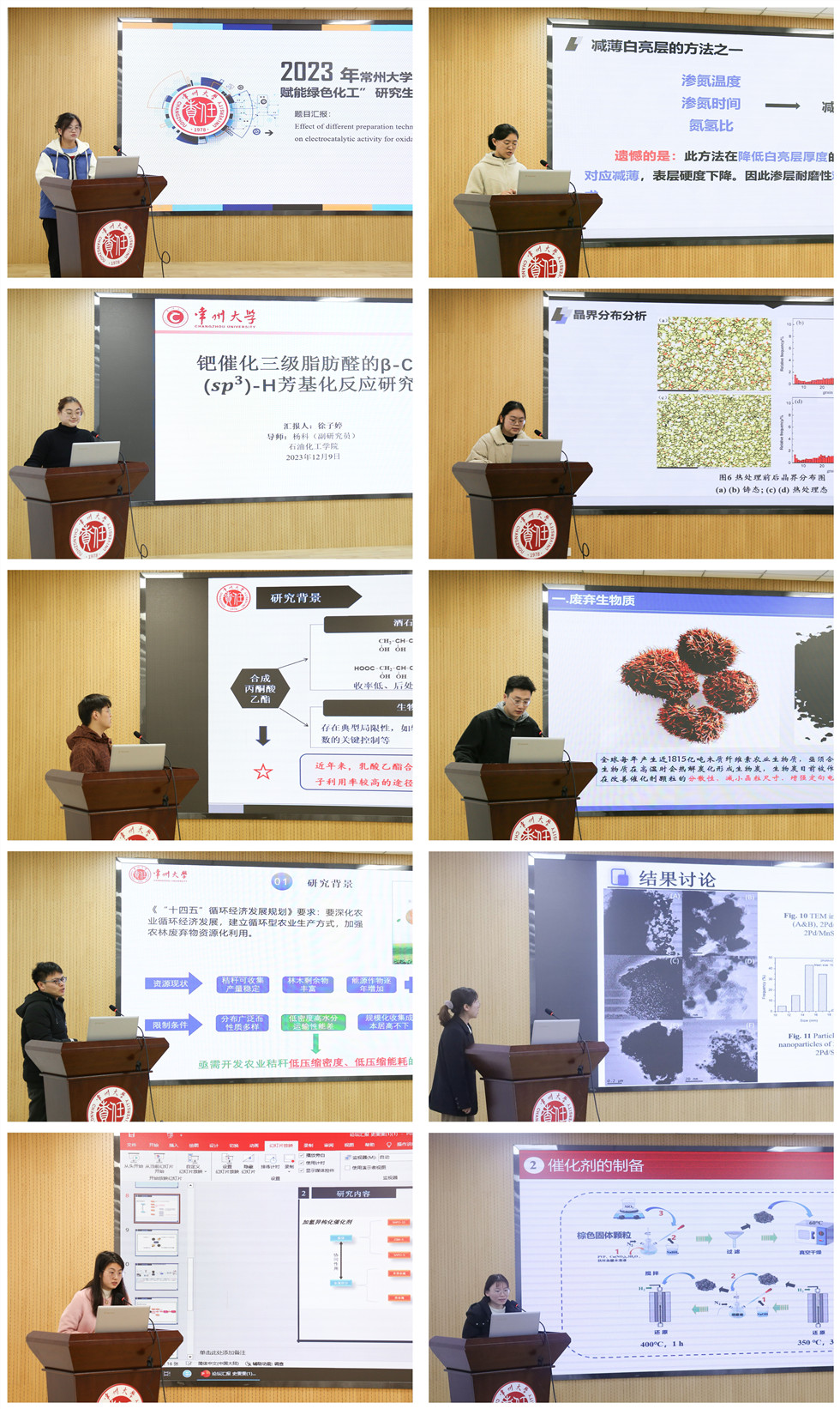 12月9日,由常州大学研究生院主办,石油化工学院承办的2023年常州大学 “聚焦新能源·赋能绿色化工” 研究生学术创新论坛于测试楼B109顺利举行。本次论坛围绕新能源转化和利用、新型光伏材料的开发与应用、储能技术及转化、生物质生化转化等为主要议题,来自石油化工学院、材料科学与工程学院的20余名同学参与报名,经过专家初评,共有10名同学进入学术报告答辩环节。