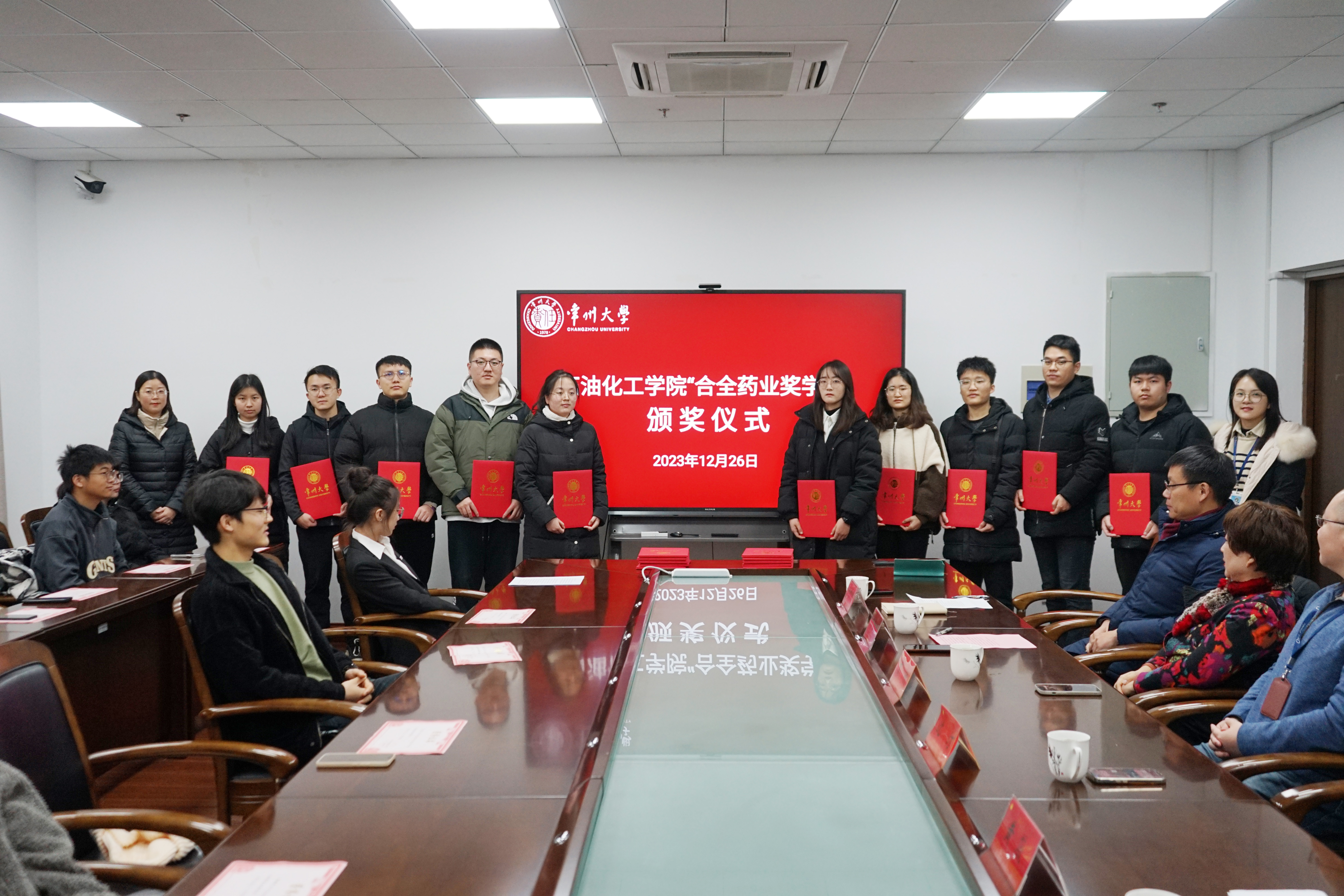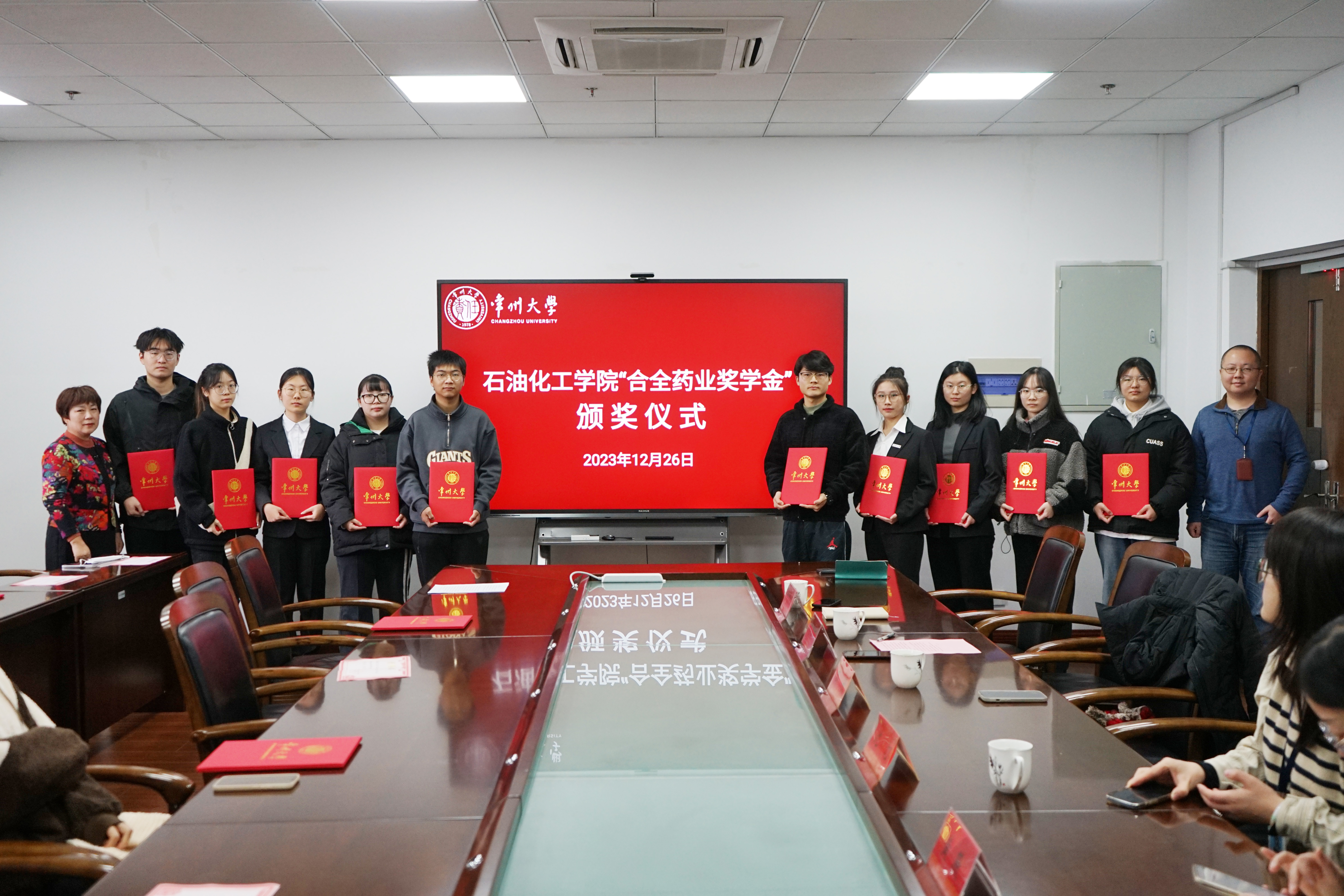 12月26日上午,常州大学石油化工学院“合全药业奖学金”颁奖仪式在测试楼B座613圆满落幕。常州合全药业有限公司沈汀经理、高欣主任,院党委书记管春英、党委副书记刘茂灿、副院长黄薇,辅导员吴林、唐弋钦,及全体获奖同学参加了“合全药业奖学金”颁奖仪式。仪式由刘茂灿主持。