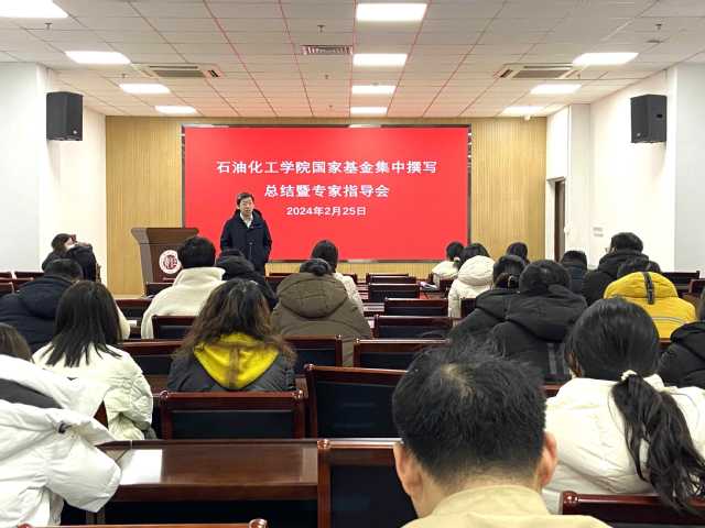 2024年2月25日,石油化工学院国家自然科学基金集中撰写总结暨专家指导会在测试楼109报告厅顺利召开,科学技术处处长张屹、项目计划科杨松和学院青年教师出席本次会议,会议由副院长刘平主持。