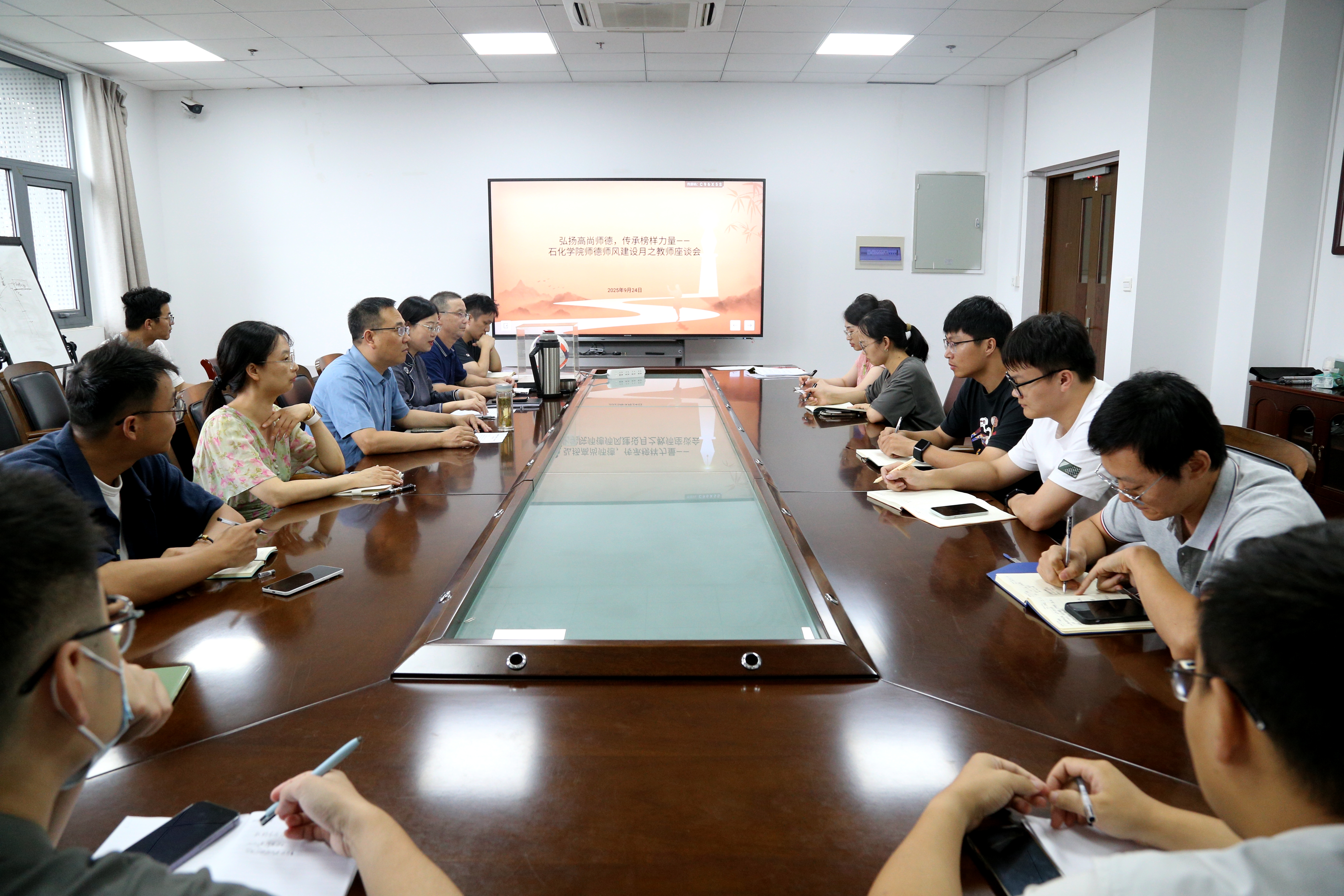 2025年9月24日,我院在B613开展“弘扬高尚师德,传承榜样力量”师德师风建设月之教师座谈会活动,党委书记业绪华、副院长黄薇、戎红仁老师、陈乐老师以及近三年新引进教师参加了座谈会,会议由黄薇主持。