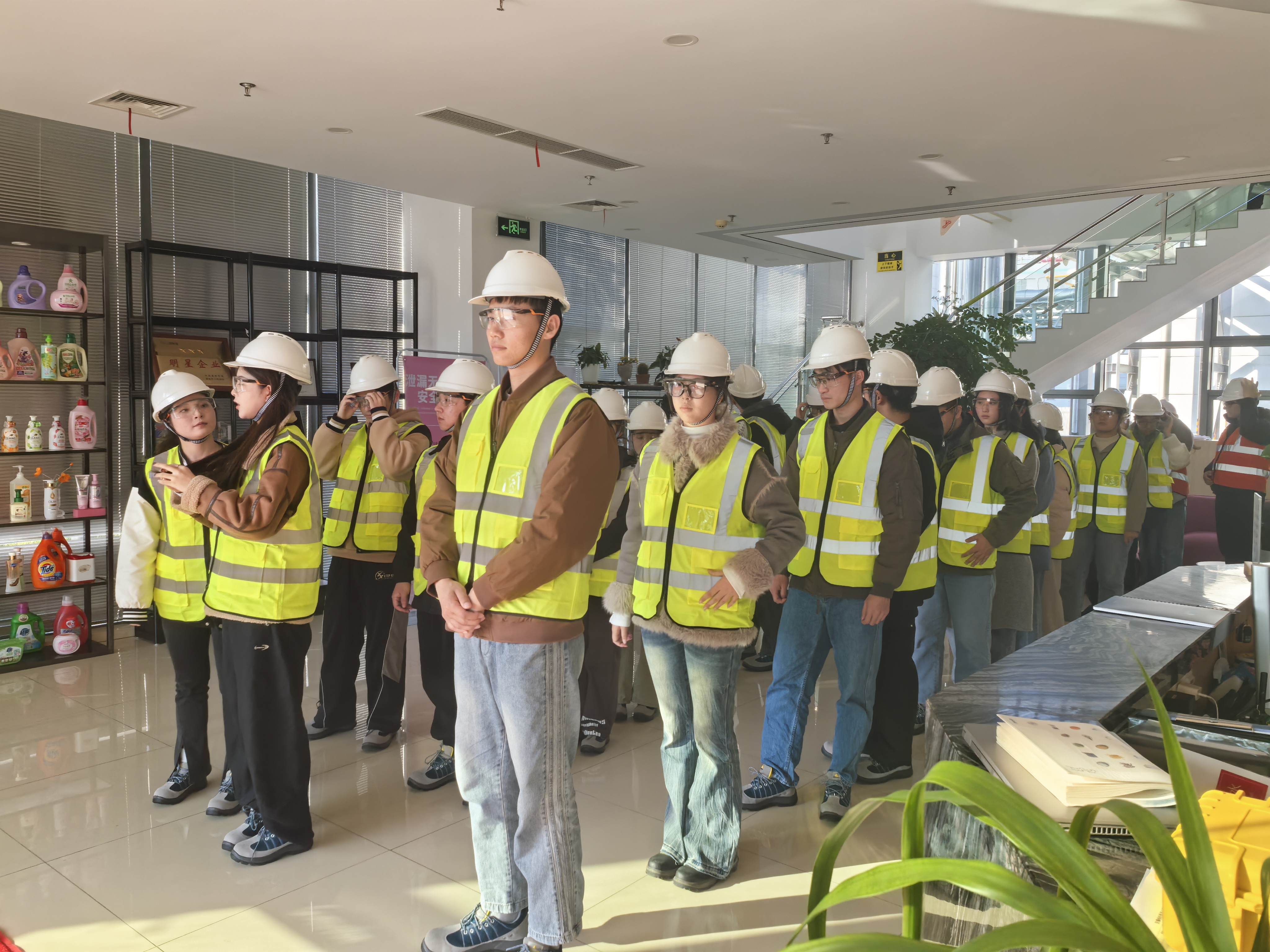 随后,在厂区负责人的带领下,我院一行前往罐装区、仓储区、生产车间、质检研究中心参观和交流。参观期间,各车间负责人带领大家深入生产一线,讲解香精香料产品的自动化生产工艺和仓储技术,同学们有序排队行进,遵守公司相关规定,并积极提问交流,让大家沉浸式体验现代化工的智能化建设和安全性保障。
