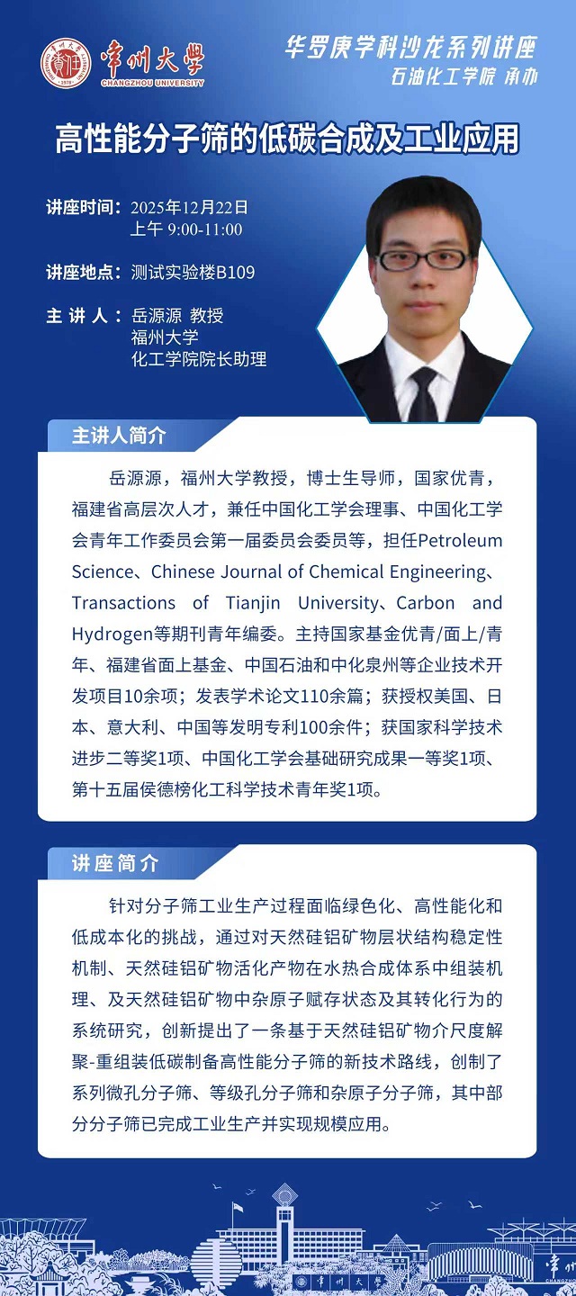 【学术报告】12月22日学术报告——冯翔教授 潘原教授 中国石油大学(华东) 岳源源教授 福州大学