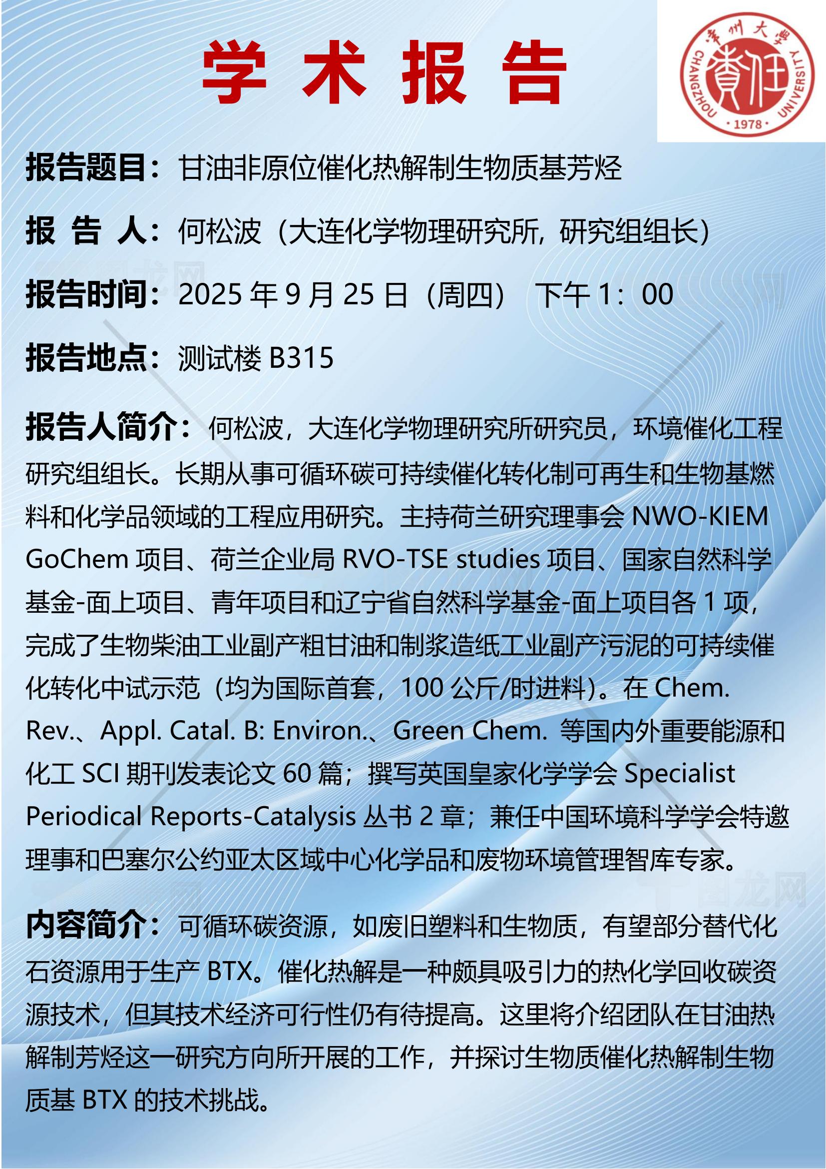 【学术报告】9月25日甘油非原位催化热解制生物质基芳烃