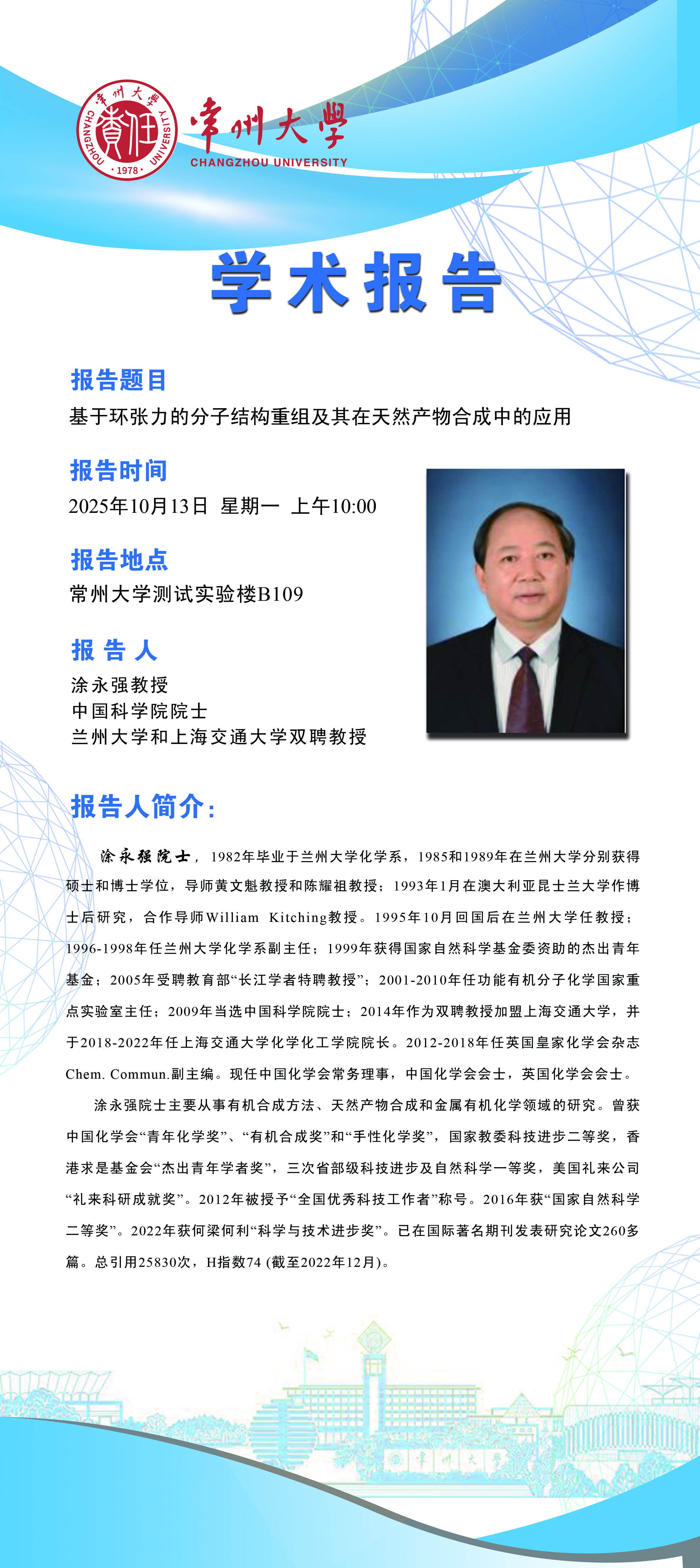 【学术报告】10月13日基于环张力的分子结构重组及其在天然产物合成中的应用