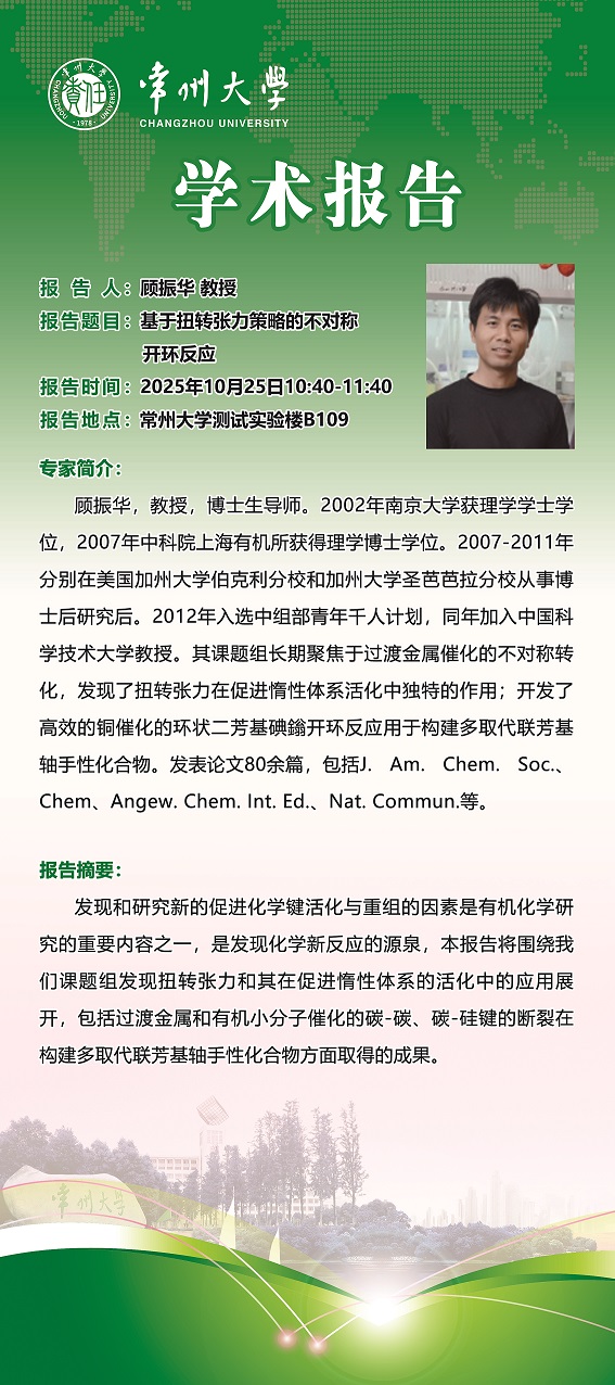 【学术报告】10月25日功能杂环研究院学术报告——丁寒锋教授 浙江大学 顾振华教授 中国科学技术大学