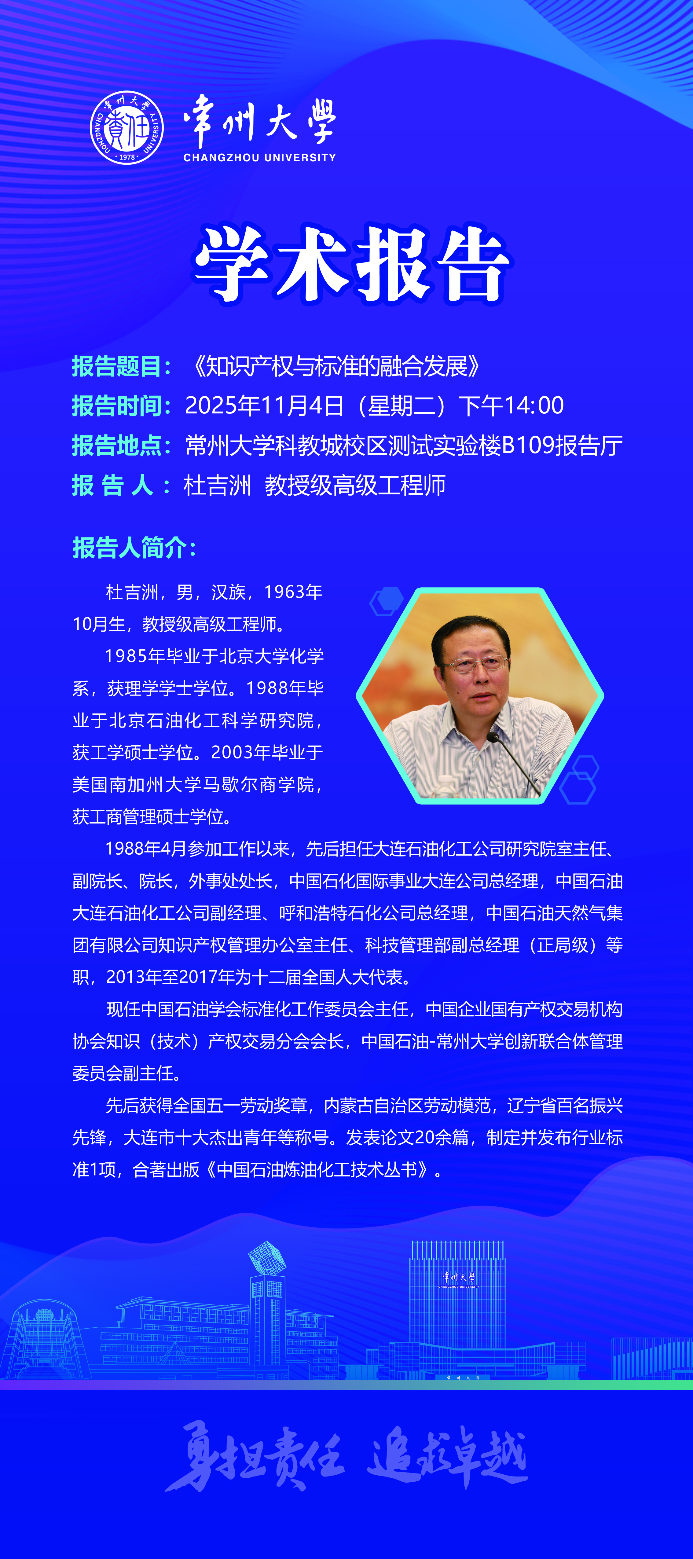 【学术报告】11月4日知识产权与标准的融合发展——杜吉洲