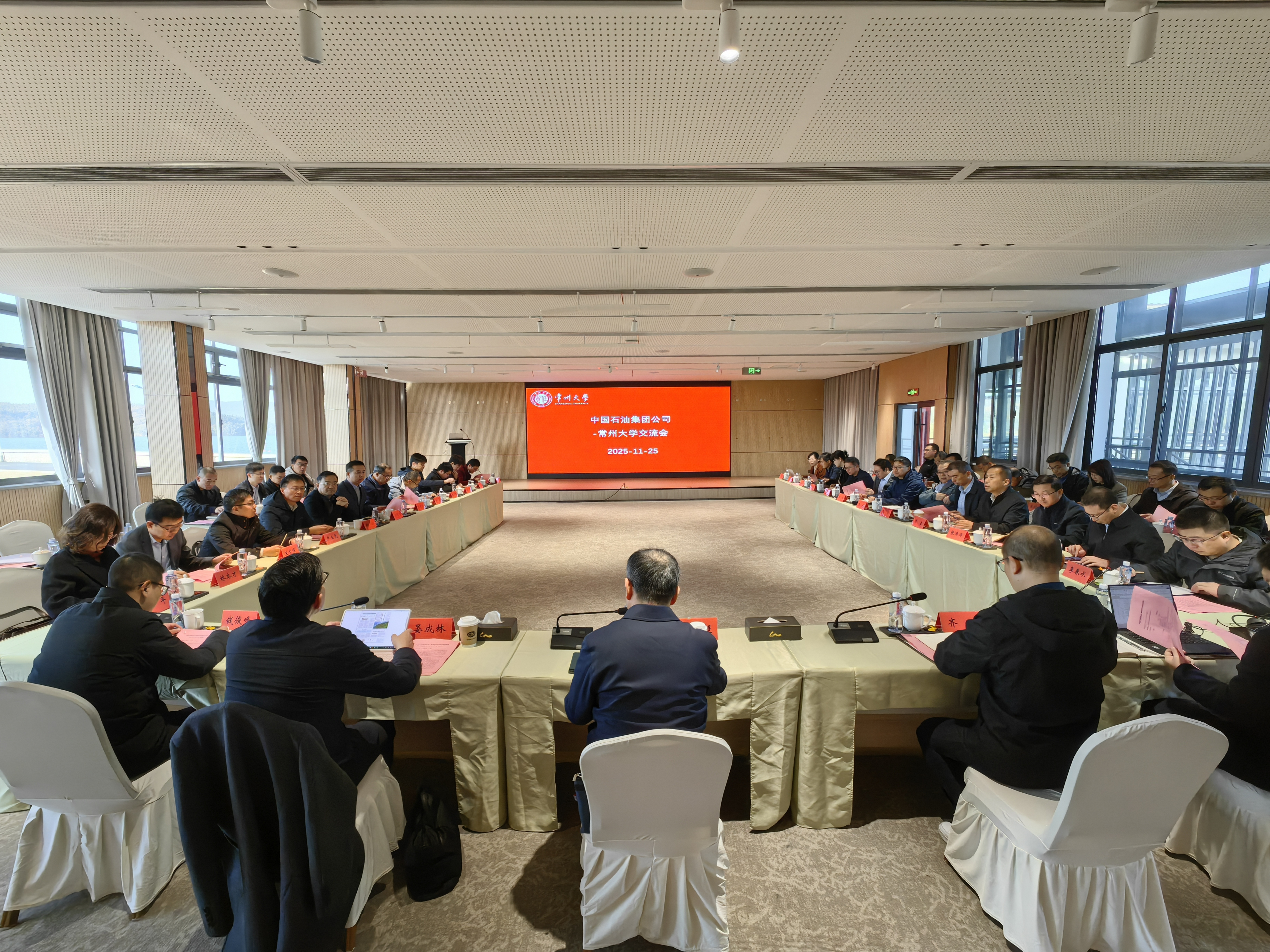 2025年11月25日,中国石油集团公司—常州大学合作交流会在常州大学金坛教育科创园召开。中国石油炼化新材料公司炼油化工高级专家宫超、常州大学副校长晏成林出席会议,炼化新材料公司、抚顺石化、兰州石化、独山子石化、锦州石化、四川石化、华北石化、蓝海新材料、克拉玛依石化、润滑油公司、石化院、昆冈先进制造公司、上海院等单位领导专家,常州大学能创处、石化学院、材料学院、环境学院、药学院等相关老师参加了会议。
