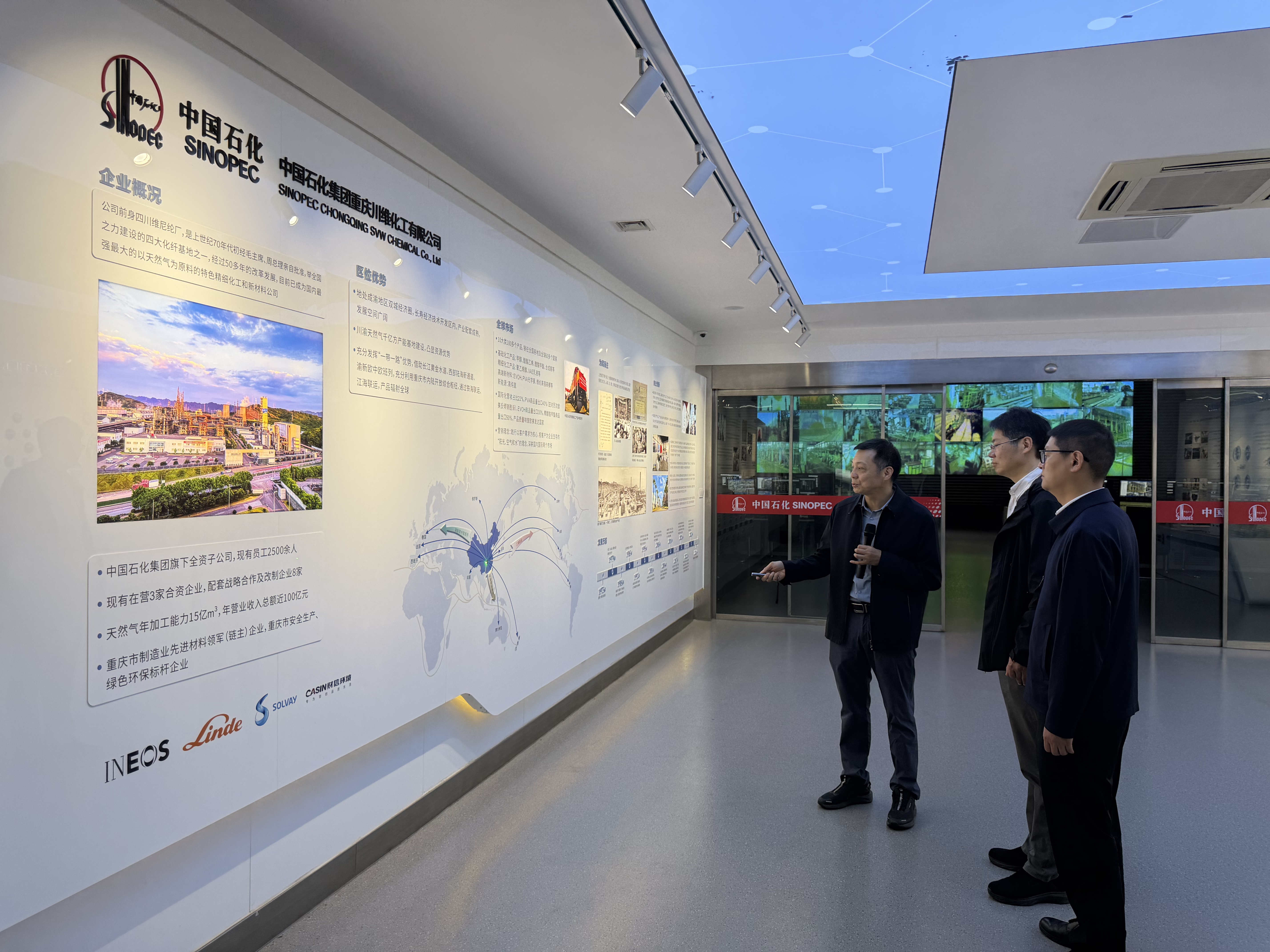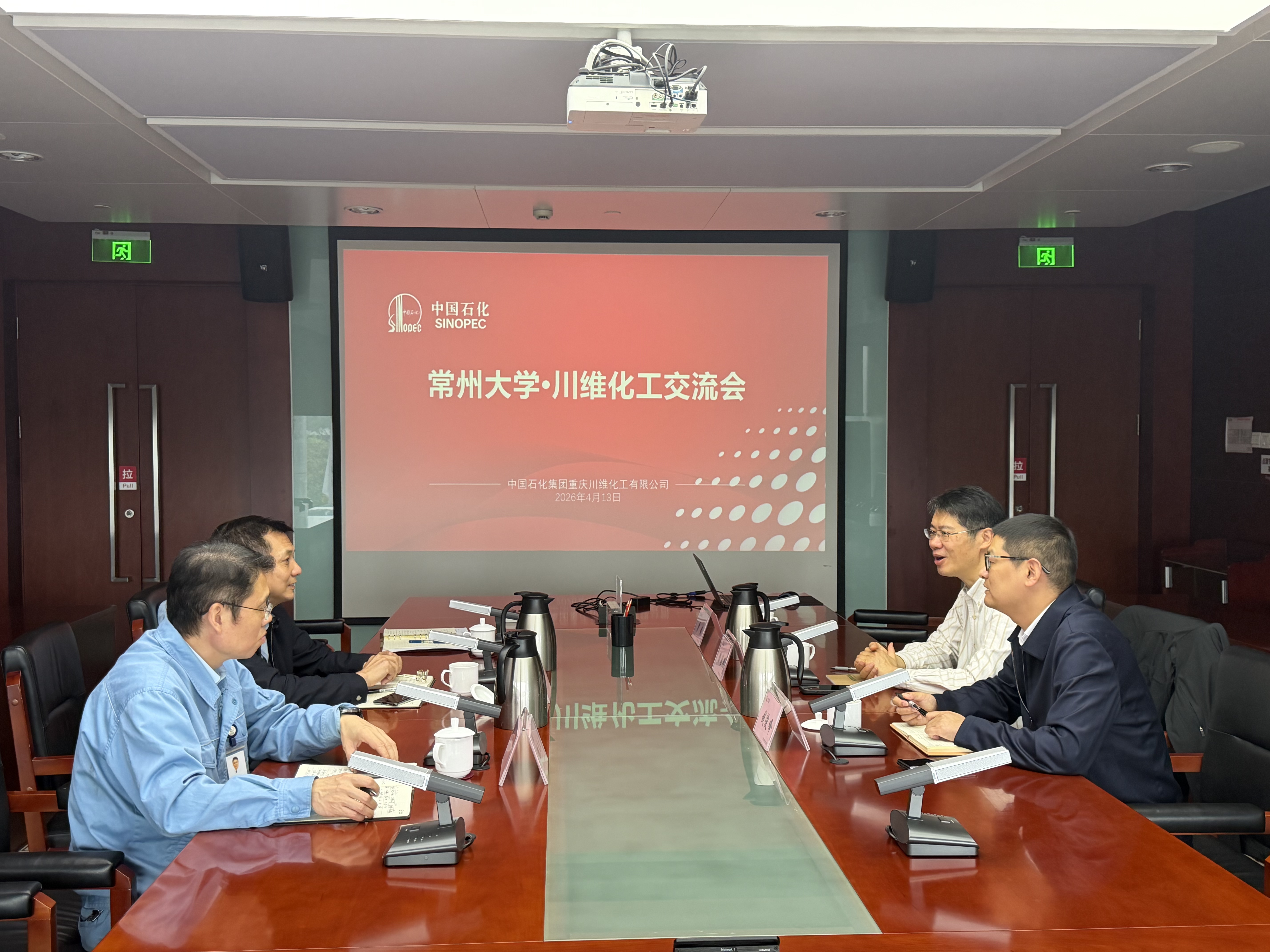 4月13日,常州大学党委副书记、校长陈海群一行赴中国石化集团重庆川维化工有限公司(以下简称“川维化工”)开展合作交流。川维化工党委书记、董事严红,副总工程师、技术质量部经理郑岩,研究院院长陈天文等出席并参加座谈交流,联合所负责人陪同交流。座谈前陈海群一行参观了企业展馆,详细了解企业发展历程、主营业务、科技创新成果及未来产业规划。 陈海群一行参观企业展厅